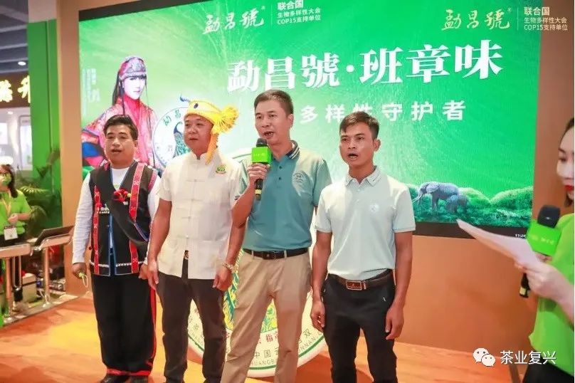 活动现场,云南勐昌茶业有限公司制茶总控师李志顺与班章村村委会副书记岩坎儿以及班章五寨友人共同发出了班章五寨品质保证,为勐昌號普洱茶埋下了信任的基石。2021年,“勐昌號·班章味”正式发布。在这一年中,勐昌號全力突破原有界限,从云南到上海、从福建到广东……在严重内卷化的普洱茶市场中快速增长的同时,更是将保护与弘扬班章茶的社会责任化为重点,“班章味”“班章生物多样性守护者”“普洱3.0品质时代”等成为2021年普洱界的品牌热词。