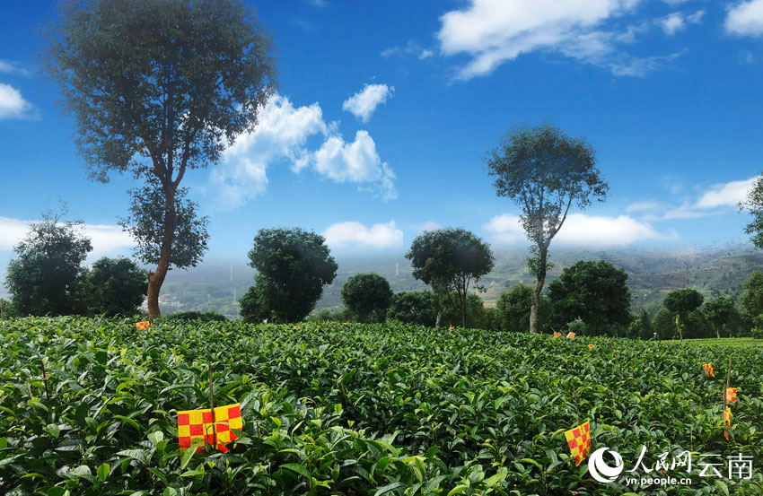 站在百里普洱茶道观景台上眺望,漫山茶园尽收眼底。人民网王星摄