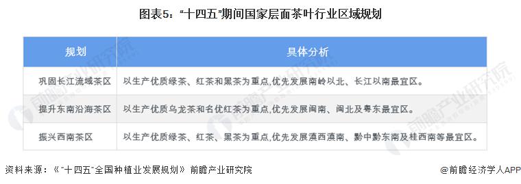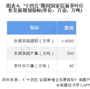 2021 年 12 月,农业农村部印发《" 十四五 " 全国种植业发展规划》,提出 " 十四五 " 期间,中国将以市场需求为导向,划定最宜区,坚持适区适种,引导非优势区退出茶叶种植。加快品种选育和老茶园改造,集成组装一批绿色高效技术模式,推进标准化生产,提高品质、提高单产、提高效益,推进茶产业高质量发展。