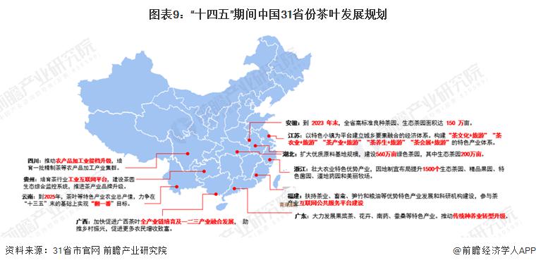 " 十四五 " 期间,中国茶叶产业较发达省份在针对茶产业优化转型、产品加工提档、数字化建设、产业链延伸、文旅特色发展等多方面提出发展目标。