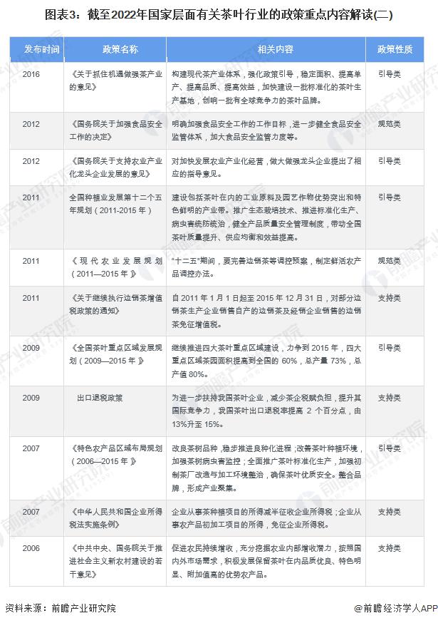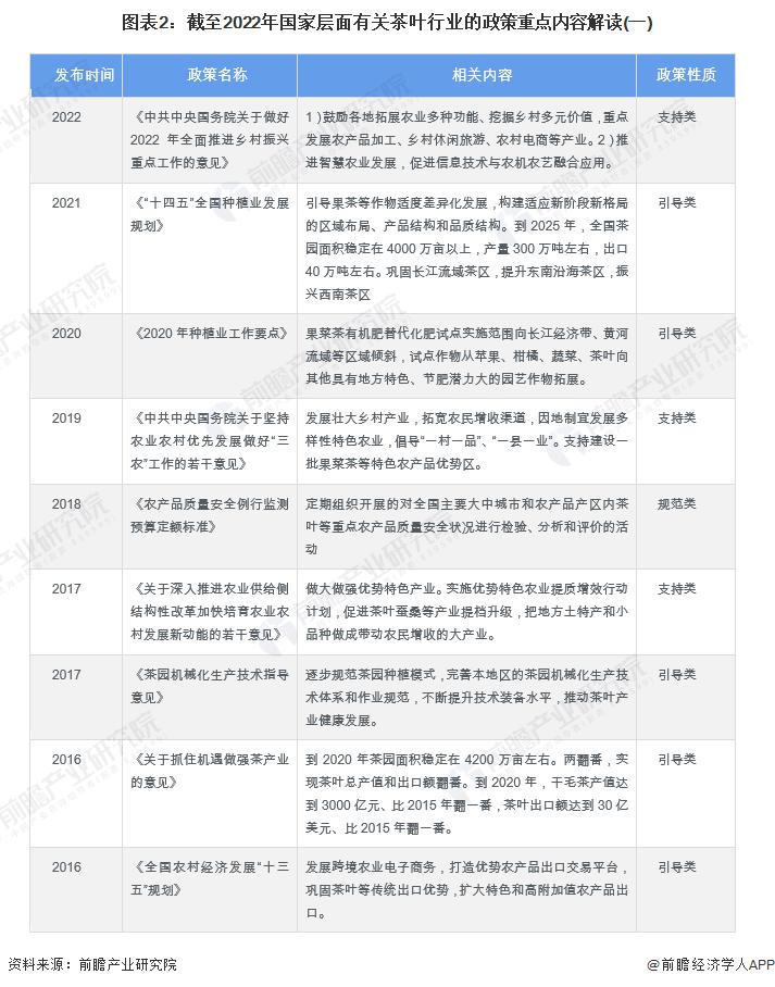 文章汇总国家层面中国茶叶行业政策及重点内容如下: