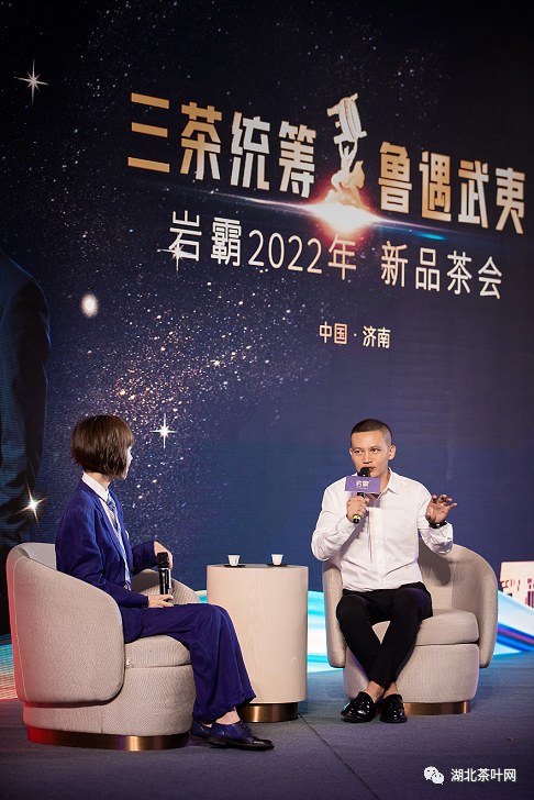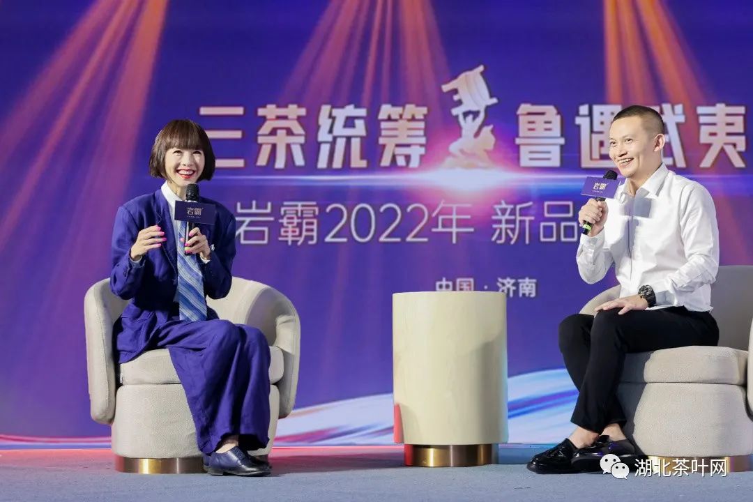 2022年8月18日,岩霸2022年新品发布茶会盛大召开,国内知名女主持人、武夷岩茶爱好者陈鲁豫与岩霸品牌创始人吴永鹏相约泉城济南。以茶为媒,在新品茶香中,共话“三茶统筹”号召下岩霸的新变化、新发展。