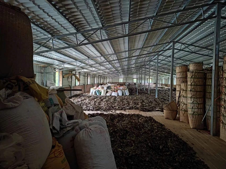 苍梧县沁怡六堡茶业专业合作社内正在干燥的“老茶婆”。新华社记者 程睿泽 摄