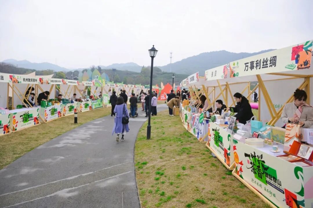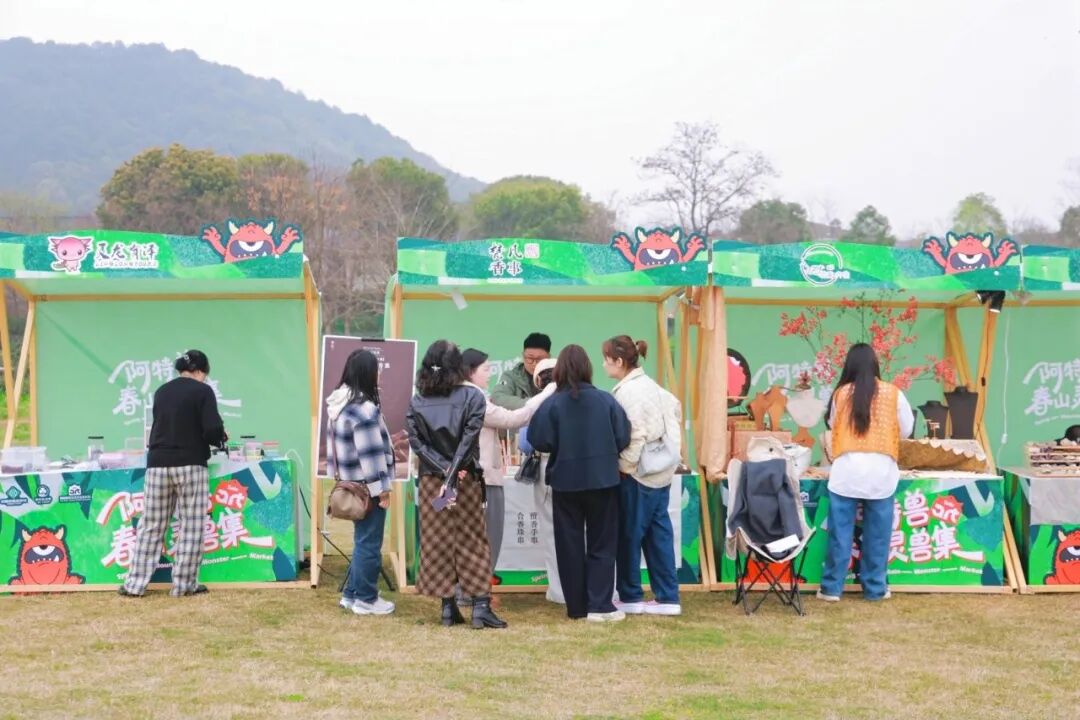 “自在生活场”特色市集:由西湖区供销社联合中国美术学院阿特兽艺术市集打造的“供销茶肆·春山灵兽集”汇集了近百个特色摊位,融合艺术原创、茶事周边、美食露营与春茶纸鸢大会,生动诠释了龙坞茶镇“泡在龙坞,自在舒服”的生活理念。