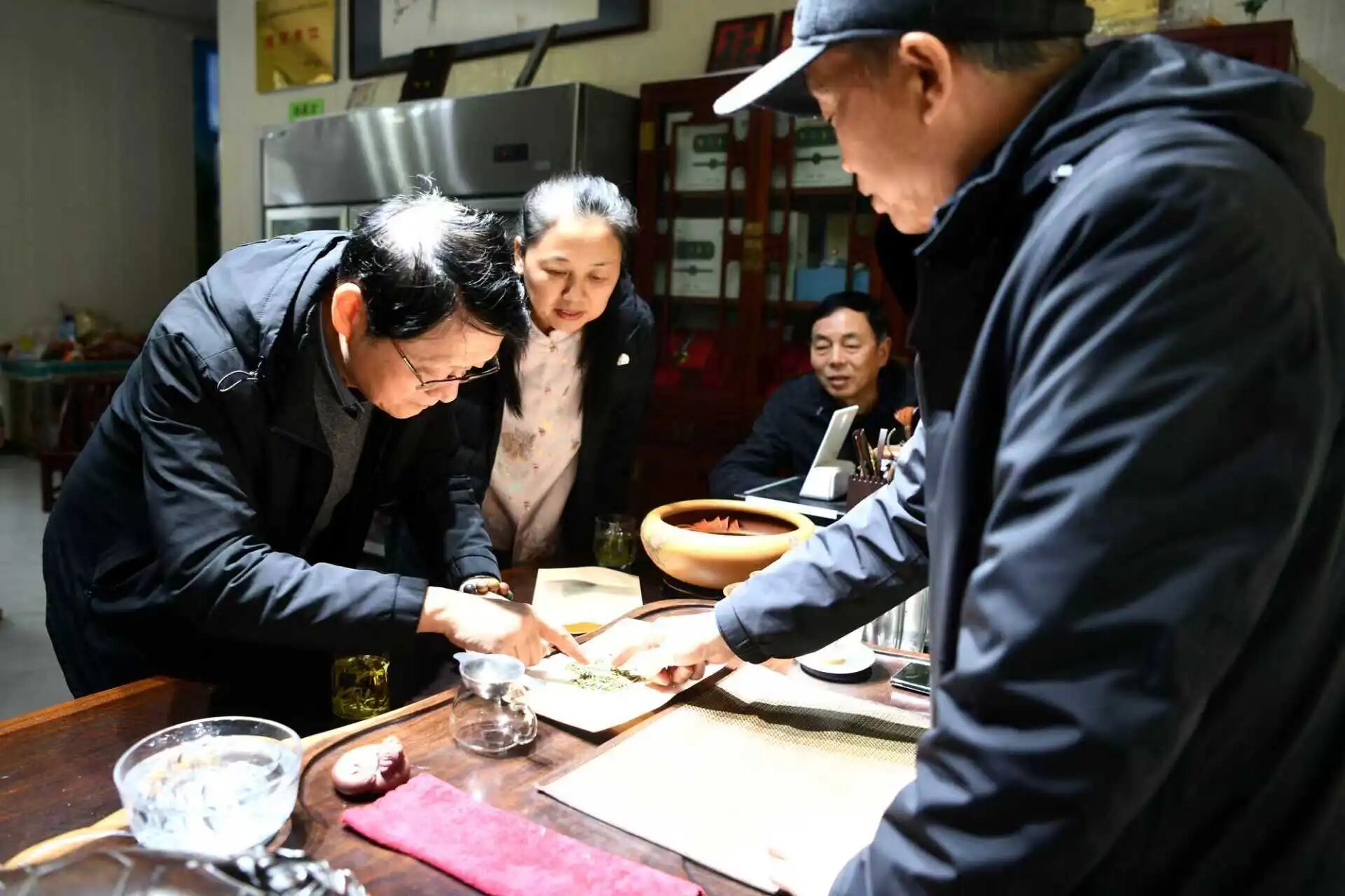 随后,专家组走进茶叶加工车间,逐一查看加工设备运行、制作工艺流程,重点询问杀青、揉捻、烘干等核心环节的技术把控要点,对基地标准化、规范化加工流程予以充分肯定,并围绕提升加工精细化水平、丰富产品品类、优化茶叶口感风味等方面提出具体改进方案,助力品质再升级。
