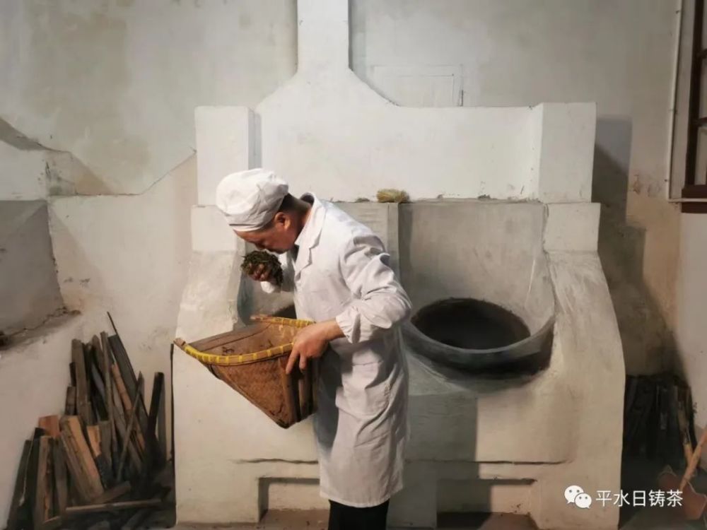 茶叶的口感、香味全靠双手的触感与经验来决定。杀青的好坏决定茶汤的口感,揉捻的好坏关乎茶叶的形状,烘焙的时机决定茶汤的香气。制茶技艺的传承,最难的是炒茶。火候是基本功,火势温吞,容易红梗;火势太旺,又容易焦边。他力争火势均匀,热力稳定,这样恒温持续的时间方能长久,便于掌握火候。有时候,他甚至在睡梦中都会念叨:稳住,稳住!现在,黄柏松只要看一眼茶,就可以大致判断出炒茶火工怎么样,知道炒茶时哪个环节出了问题。当年,他也练过手,大铁锅温度高,手法不熟练,烫伤起泡痛得龇牙咧嘴。但他不服输,忍痛接着炒。