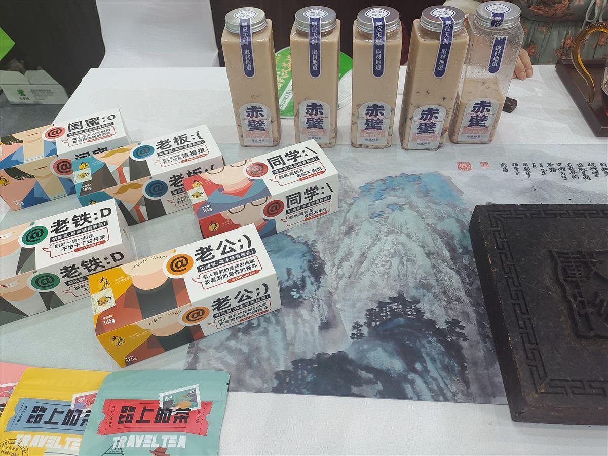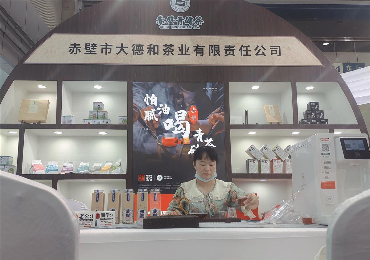 大德和茶叶有限公司展区看上去格外活泼,样式不一的茶包和包装鲜艳的奶茶,吸引了很多年轻人驻足品尝。该展台负责人余涛介绍,为了迎合年轻人对奶茶的强烈需求,公司创始人决定走上变青砖茶为青砖奶茶的道路。将青砖茶熬成浓郁的茶冻,加入蜜豆、燕麦、牛奶,实现零糖添加。公司选择高香系列的乌龙茶和红茶,具有辅助减肥、促进消化、提升醒脑功能的青砖茶就让奶茶变得既美味又健康。在咸宁,线下名为“地道•鲜茶”的青砖奶茶店已经开了两家,每日销售量最高可达6000元,在不久的将来,武汉线下青砖奶茶店也将面世。