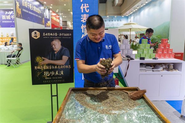 展示茶产品,传承茶文化。7月1日,第25届中国武汉茶业博览交易会在武汉国际会展中心拉开帷幕,蓝焙茶业与星斗山利川红联合进行现场推介,国家级非遗传承人杨胜伟发布新书《恩施玉露》(第二版)并现场签售。