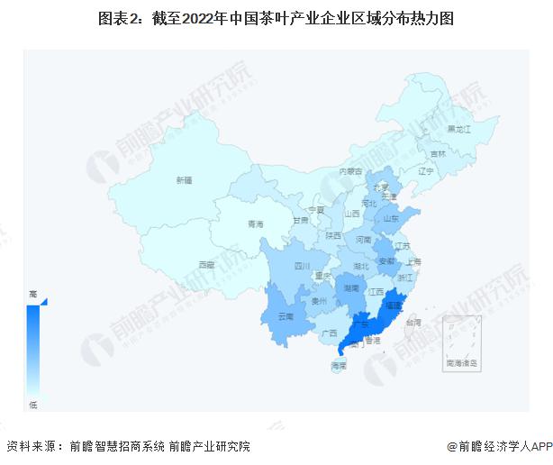 根据前瞻智慧招商系统数据,中国茶叶产业相关企业主要集中于华东、华南地区,其中广东、福建两省企业数量最多,分布最为密集。