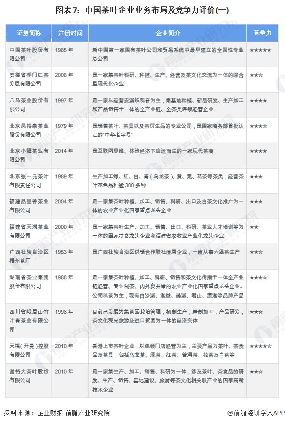 由于中国茶叶市场格局分散,业内代表企业市场份额占比小,除天福茗茶成功于港交所上市外,业内尚未出现上市企业。故文章汇总代表企业茶叶业务发展概况,结合企业注册资本、经营市场等指标对其竞争力进行评价如下:
