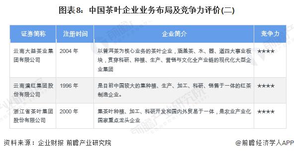 中国茶产业公司:中国茶叶、大益茶业、八马茶业、君山茶业等