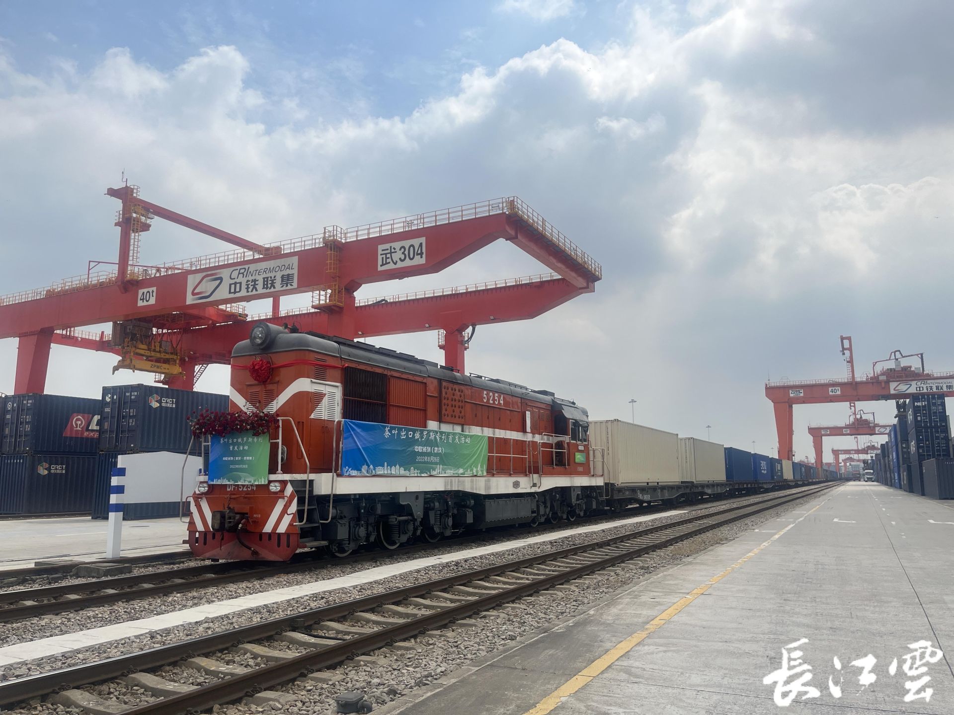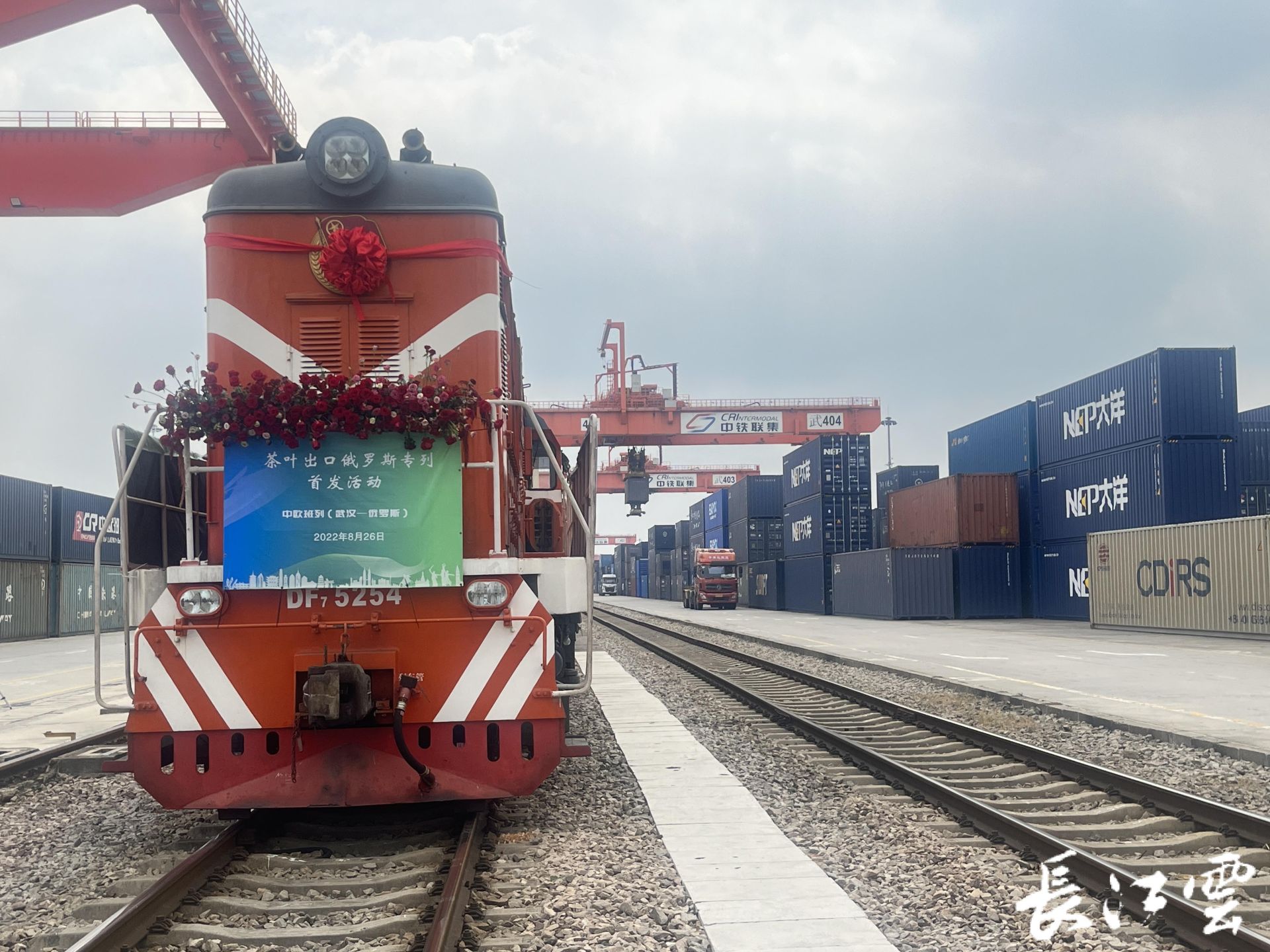 8月26日上午12时许,湖北茶叶出⼝俄罗斯专列,正式发⻋。50节满载茶叶的货柜随列车一同出发,由中铁联集武汉中⼼站(吴家⼭货场)发往俄罗斯。