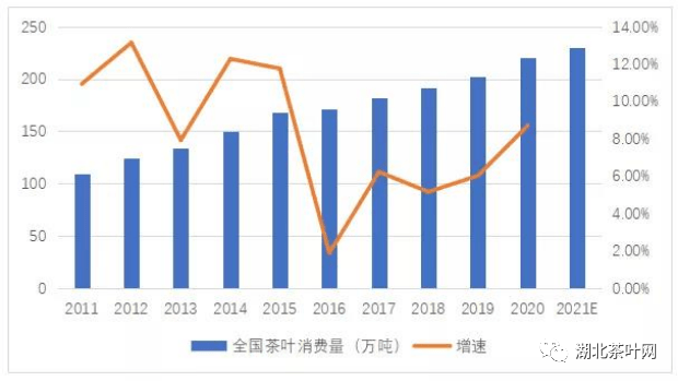 据中国茶叶流通协会统计,2020年茶叶国内销售量达220.16万吨、同比增长17.61万吨,增幅为8.69%。销售总额为2888.84亿元、同比增长149.34亿元,增幅5.45%。即便当年出现了疫情这一不利因素,但是茶市场的销售情况依旧是乐观的。