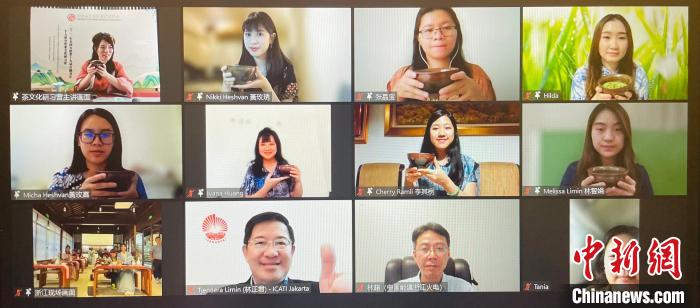 10月23日,2022年全国台联第十九届台胞青年千人夏令营海外营茶文化研习营(印尼专场)举办。 全国台联供图中新网北京10月24日电 (朱贺 林永传)2022年全国台联第十九届台胞青年千人夏令营海外营茶文化研习营(印尼专场)23日在北京、杭州以及印尼雅加达以线上线下相结合形式举办。营员们相聚“云端”,体会中华茶文化的韵味与趣味。