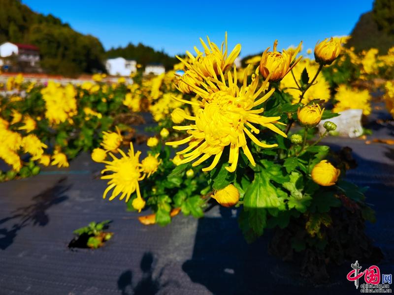 金丝皇菊的喜获丰收,不仅壮大了集体经济,还拓宽了当地群众的就业渠道,铺出了一条美丽致富“黄金路”。“这些菊花长势很好,这几天村里组织我们过来采摘,一天能挣100多块钱呢!”正在基地采摘金丝皇菊的王义花笑着说道,自从水草坪药膳种植基地建起来,自家的土地流转出去可以收取租金,还能在家门口务工挣钱,日子越过越红火了。