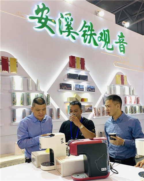 为加大宣传“安溪铁观音”这一世界级名片,充分展示安溪乌龙茶精品、提升知名度,11月10日,由安溪县龙涓乡乡长徐龙虾带队,安溪铁观音大师李力周、刘金龙及高鼎、举源茗茶、龙尖一号等茶企,龙涓茶业发展促进会等一行,赴成都市中国西部国际博览城参加第106届全国糖酒商品交易会,举办安溪铁观音“好茶龙涓”馆展示活动,旨在展示安溪铁观音半发酵传统工艺,宣传安溪铁观音厚重传统文化,展示安溪铁观音现代式便捷杯子茶产品。