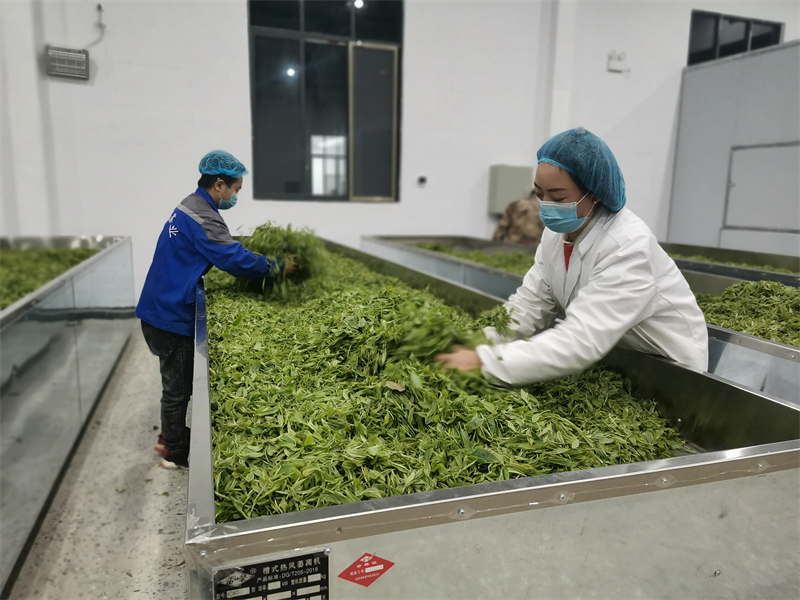普安县新店镇茶叶加工厂正在萎凋茶青