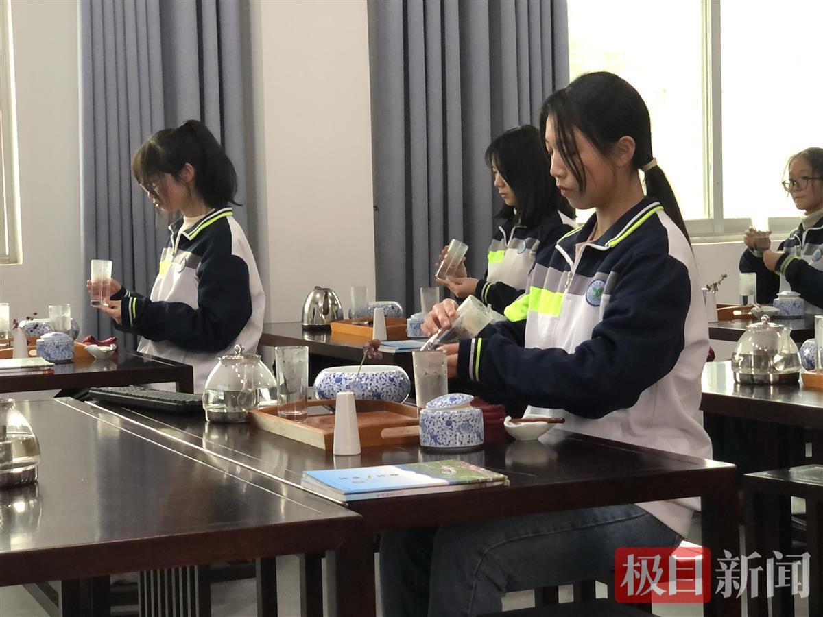 据了解,根据英山一中校方要求,每位学生在校期间要完成6个课时的茶艺课程,3节课用来学习茶文化的理论知识,包括茶的起源、茶的分类、博大精深的中国茶文化,以及基本的茶艺礼仪;另3节课用全套茶具进行实操训练,完成一个完整的绿茶玻璃杯茶艺表演。