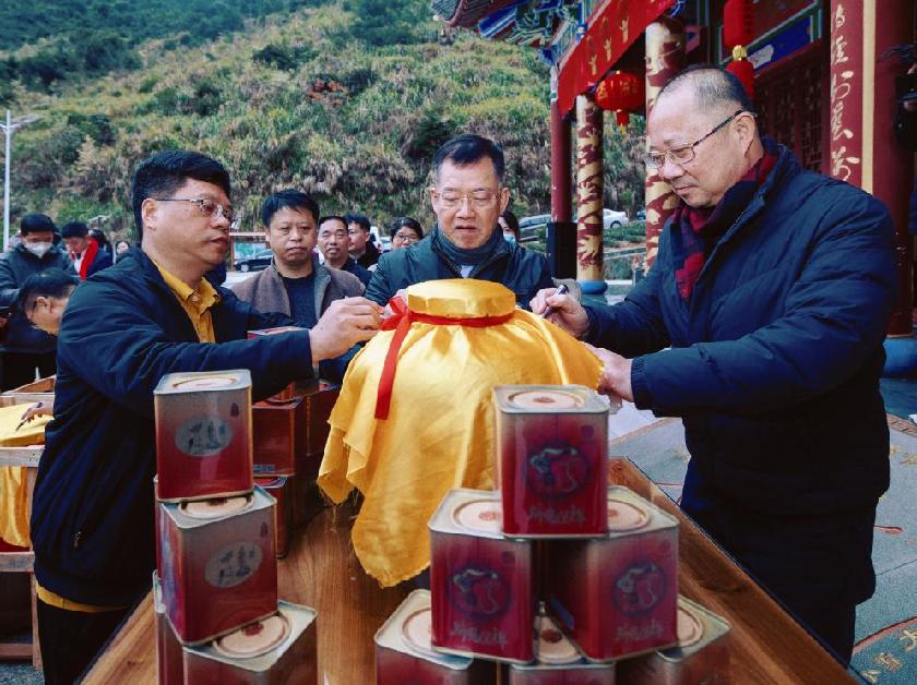 铁观音是半发酵茶叶,初制以后,通过长久的封藏,茶叶会自然氧化,部分物质进行转化,使茶叶滋味更加醇厚。沉淀岁月茶香,祈福纳吉迎祥,封茶仪式既是对古老技艺的传承,又是将美好的记忆与祈愿存封起来。这一坛坛经封坛贮藏起来的安溪铁观音“双世遗”纪念茶,诠释着安溪传承千年的茶文化礼俗,是不可多得的典藏品。随后,安溪县委县政府向中国茶叶博物馆、福建省博物院、泉州市博物馆、安溪县博物馆,各赠送1坛安溪铁观音“双世遗”纪念茶作为博物馆藏品。