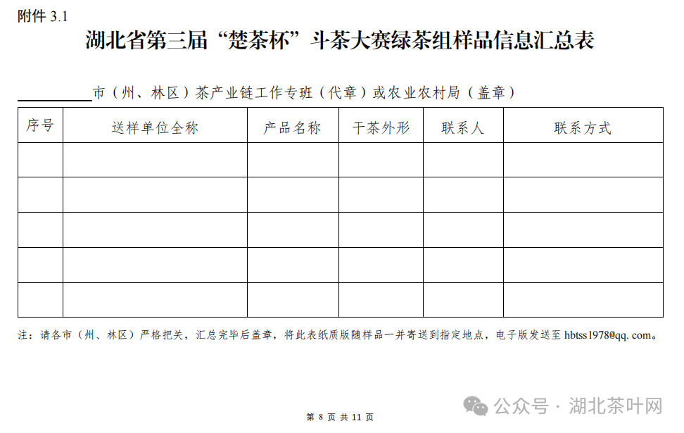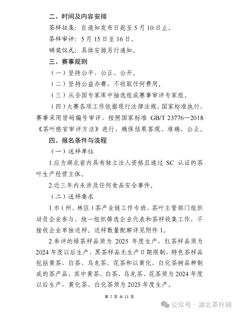 茶样征集:自通知发布日起至5月10日止。