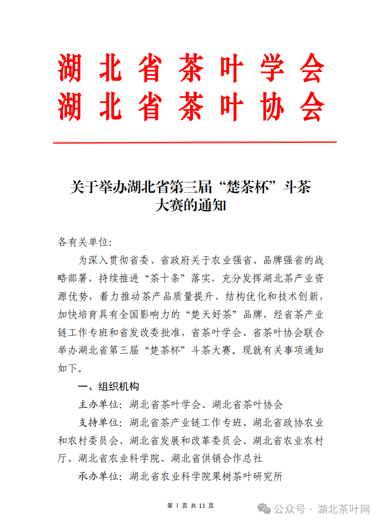 关于举办湖北省第三届“楚茶杯”斗茶