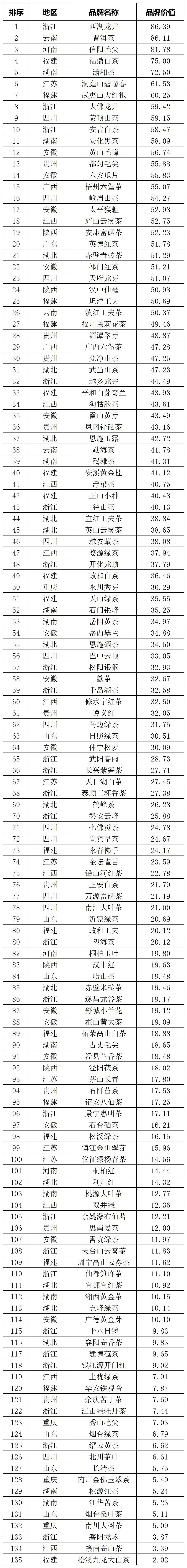 2024年12月,由浙江大学CARD中国农业品牌研究中心、中国农业科学院茶叶研究所《中国茶叶》杂志、浙江大学茶叶研究所、浙江永续农业品牌研究院等权威机构联合组建的课题组,共同开展了第十六次“中国茶叶区域公用品牌价值评估”公益课题研究(评估对象邀请不包含我国港、澳、台地区)。