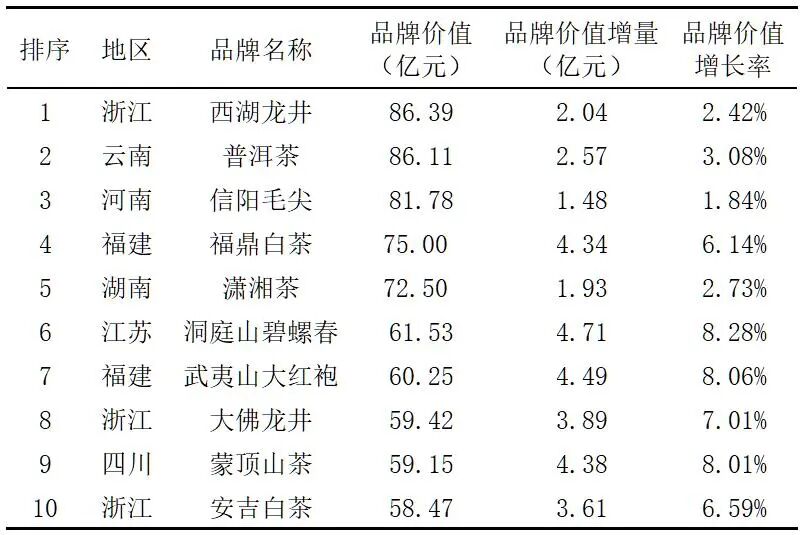 表 2 2025品牌价值位于前10的中国茶叶区域公用品牌