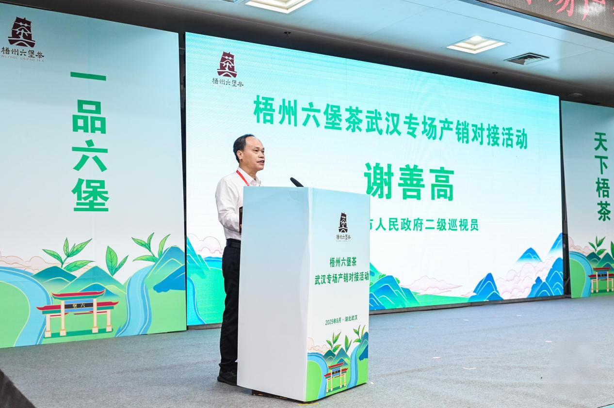 梧州市人民政府二级巡视员谢善高在致辞中表示,武汉作为中部地区的核心城市,消费市场广阔,商机涌动如潮。希望梧州茶企能借助此次武汉茶博会的影响力,与华中市场进行深度对接,进一步扩大梧州六堡茶在华中市场的行销范围,在擦亮“梧州六堡茶”品牌的同时,为广西“桂品出乡”工作贡献更多梧州力量。