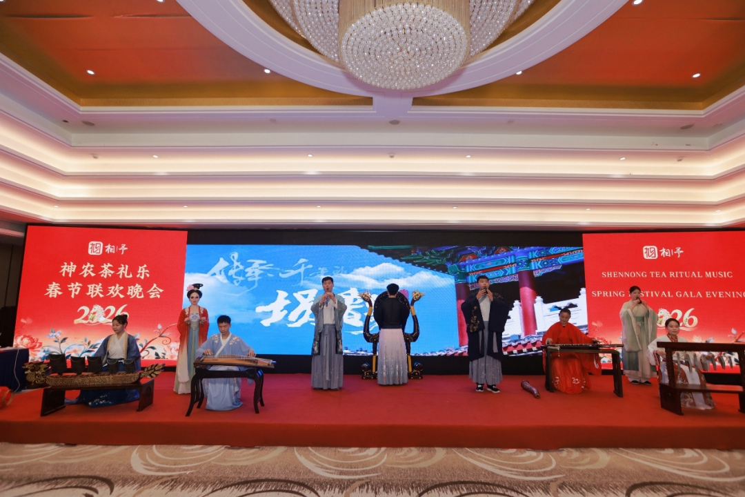 (湖北茶叶网消息)2026年1月18日,瑞雪映中轴线,茶香漫紫禁城。茶香九州,礼乐宾筵,2026第二届神农茶礼乐春节联欢晚会在北京中国传媒大学国际会议中心隆重举行。《礼颂神农茶祖礼乐大典》庄重启幕、18席茶美学竞艳京华,五项世界非遗交融,500位中外嘉宾共赴民间雅致盛会,于唐宋茶韵与古今交响中,见证中国式幸福炫彩世界。