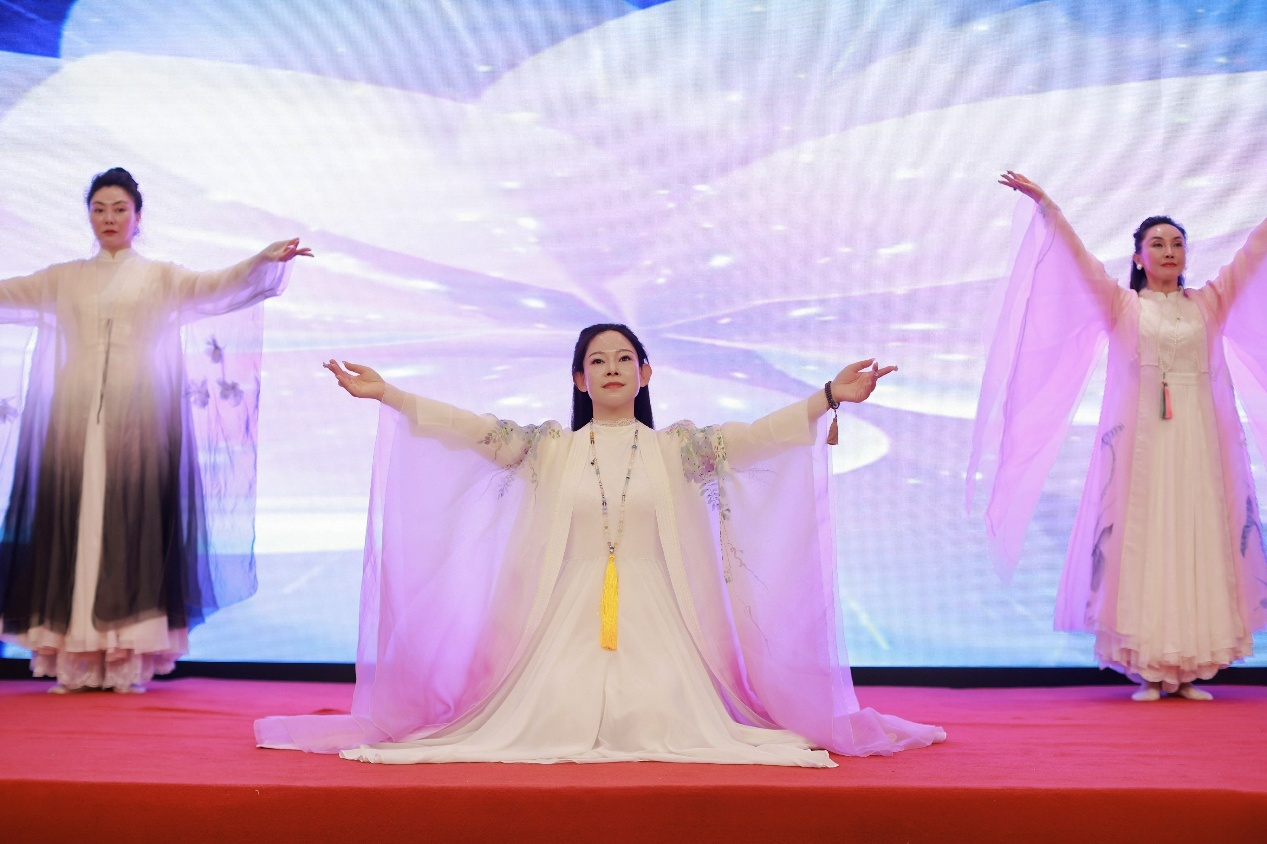 由胡礼荣携弟子秦苏渝带来的《敦煌乐舞:山河赋》舞姿曼妙宛若飞天
