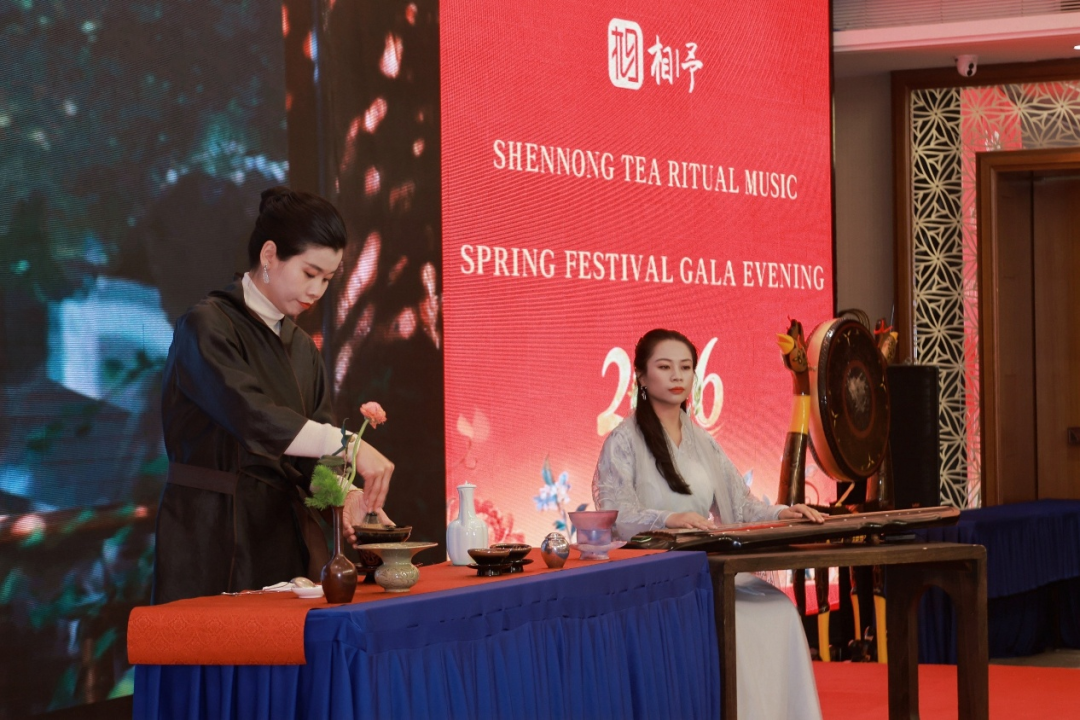 由中华文化促进会茶产业工作委员会、中国商业文化研究会商业品牌工作委员会、中国非物质文化遗产研究网联合指导,神农茶礼乐春晚组委会主办,嘉石木集团、相予茶礼乐艺术团承办,北京市昌平区德方育华学校、莫说茶文化协办的2026第二届神农茶礼乐春节联欢晚会,在北京朝阳区中传国际交流中心盛大启幕。全国各省代表、各行各业精英与海内外500余位嘉宾齐聚一堂,以“两片树叶一把土”的东方智慧为引——茶叶、桑叶与陶瓷茶器交织,18种风格茶席美学现场竞艳,席主亲自主泡、品茶赏春晚的沉浸式体验拉满氛围,茶美学空间展示、汉服打卡、太极展演、封茶大典相映成趣,马年茶春晚吉祥文创惊艳亮相,茶做红包千福齐发,将春节喜庆推向高潮。众人在茶香礼乐中践行“因茶而聚,因乐、因礼、在一起而美好”的初心,奏响“民族自信,天下大同”的新春乐章。
