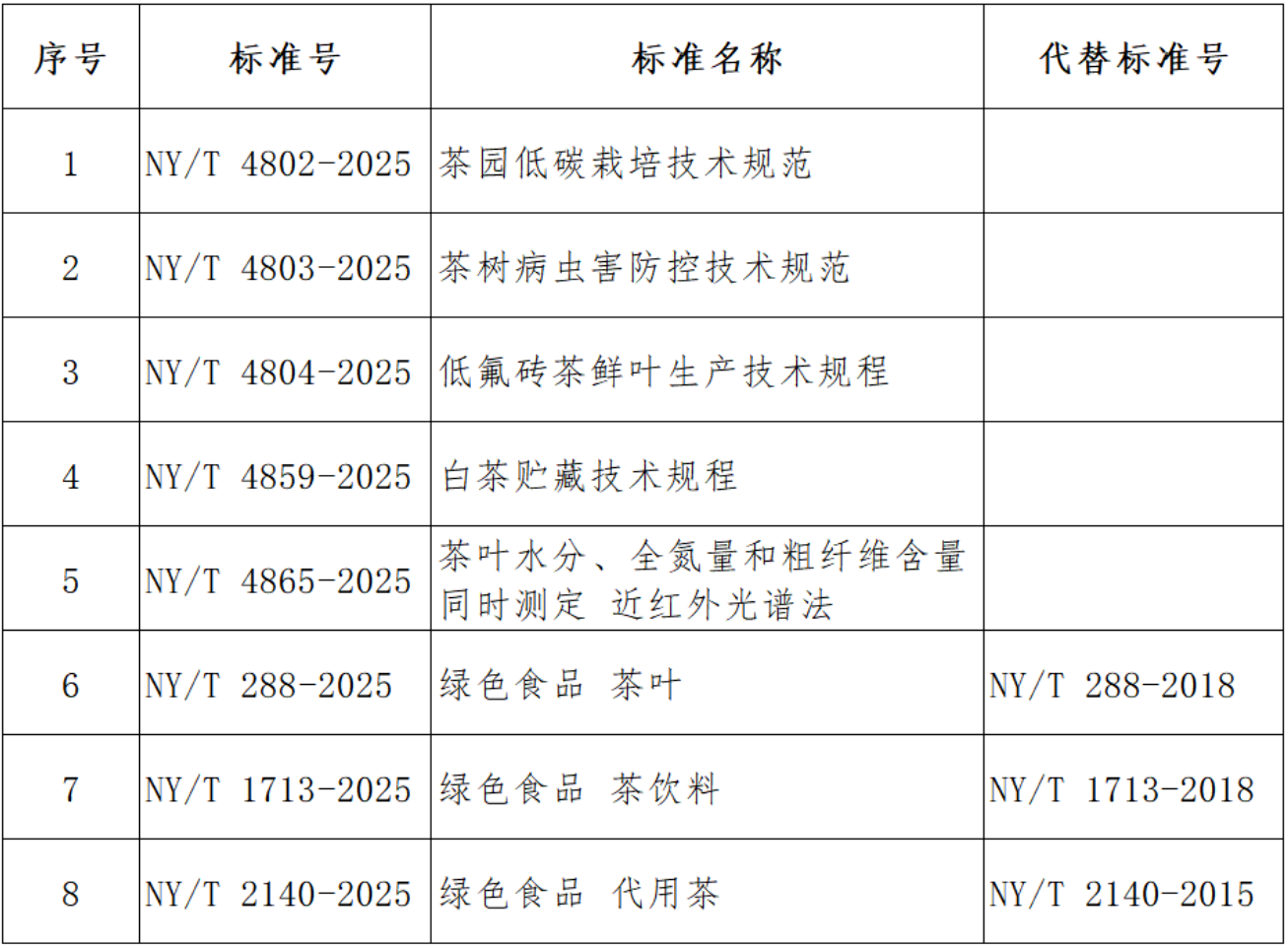 其中,包含茶行业标准8项,具体名单如下: