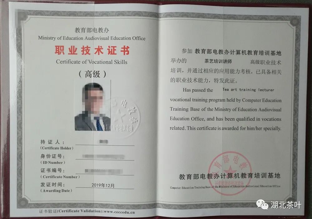 1、国家教育部电教办计算机教育培训基地颁发“茶艺培训讲师”职业技术证书。