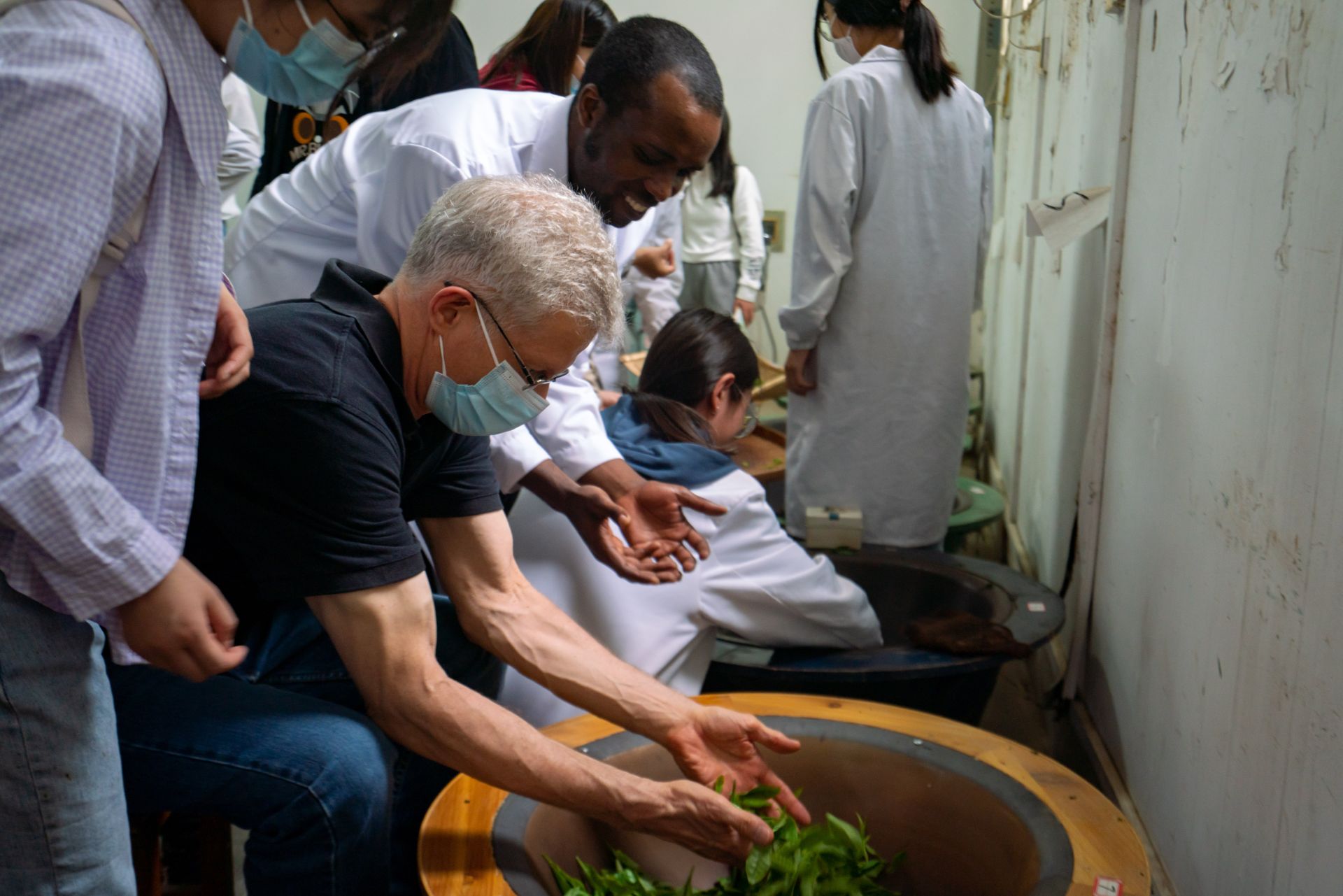 “翠团云拱嫩芽新,百碾千搓一水淳。”4月20日下午,华中农大在教学茶厂开展了国际交流周系列之一的“沉浸式”制茶全体验活动。