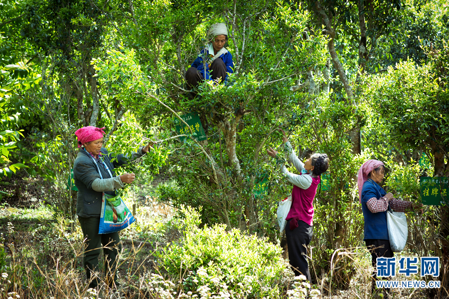 茶农在采摘古树茶(资料图)。新华网发(腾冲市高黎贡山生态茶业有限责任公司 供图)
