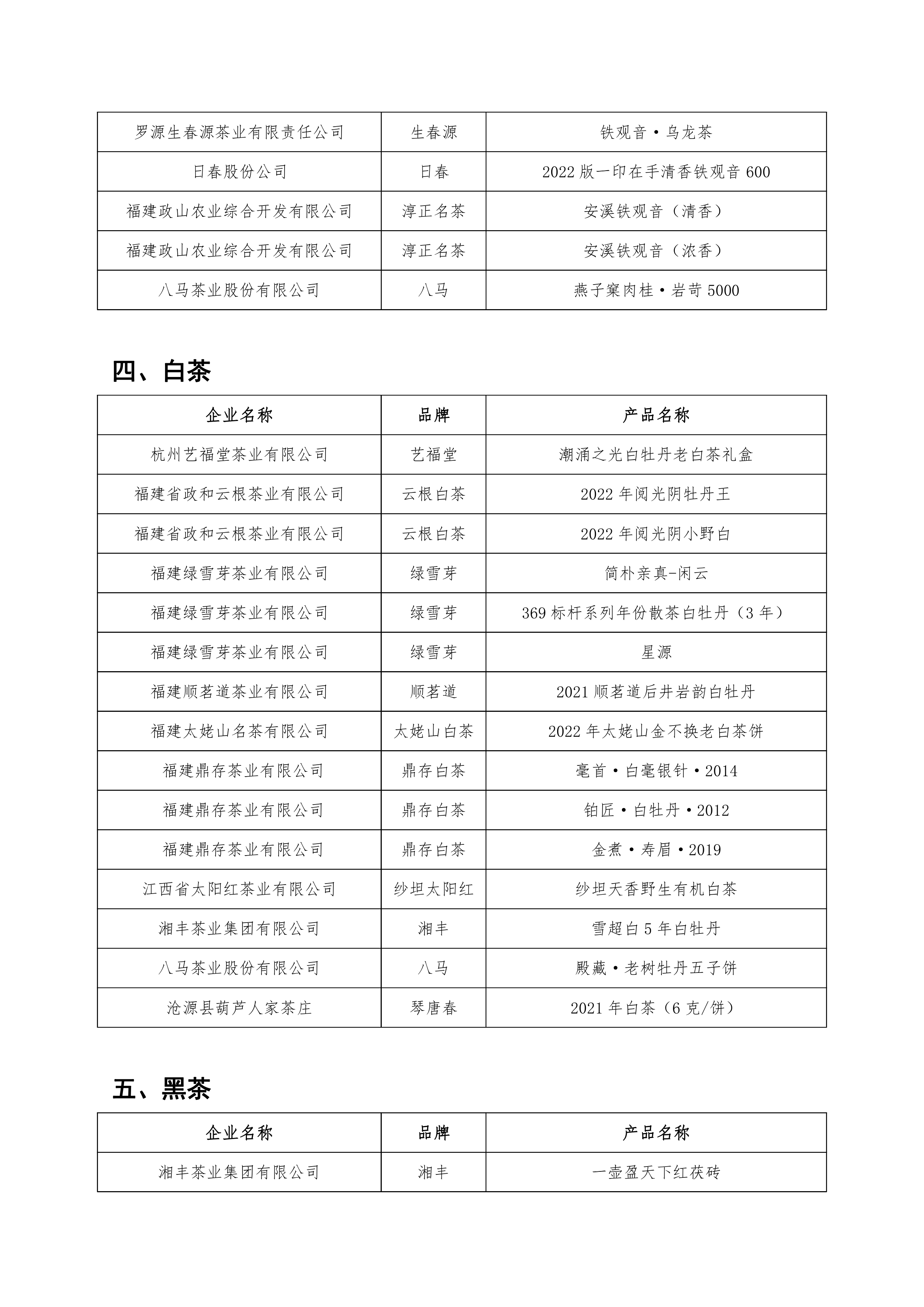 关于发布首届“吃货节”茶叶新品推荐名单的通知