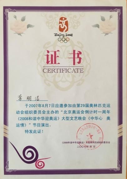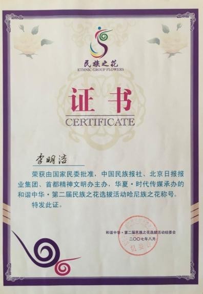 哈尼族冠军奖杯 哈尼族之花荣誉证书 北京奥运会倒计时一周年演出证书