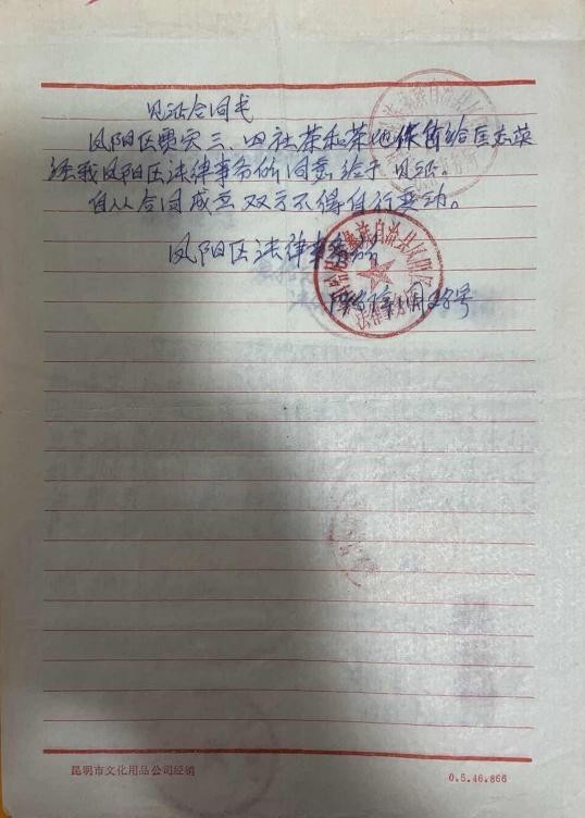 匡志英购买茶地契约 凤阳区法律事务所见证