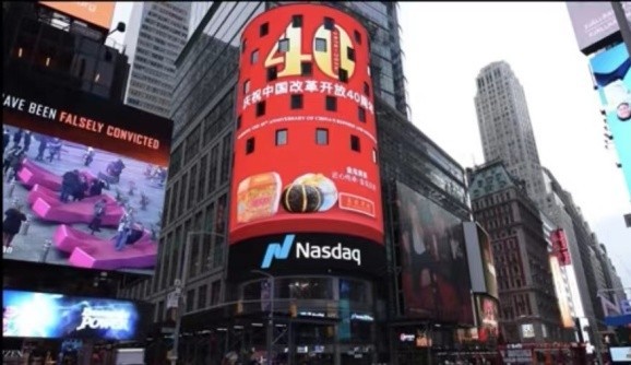 李兴昌、李明泽父子亮相美国纽约时代广场的纳斯达克大屏幕