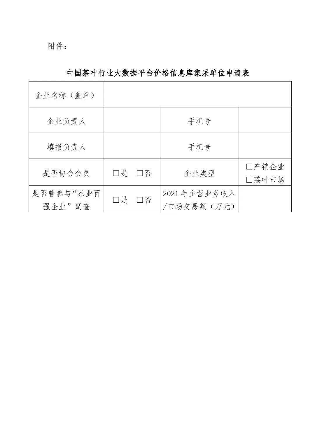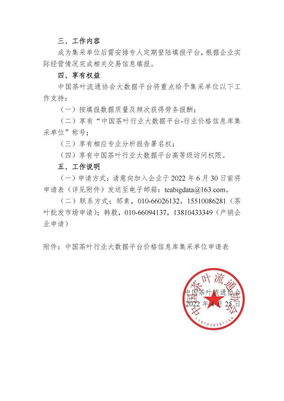关于招募中国茶叶行业大数据平台价格信息库集采单位的通知